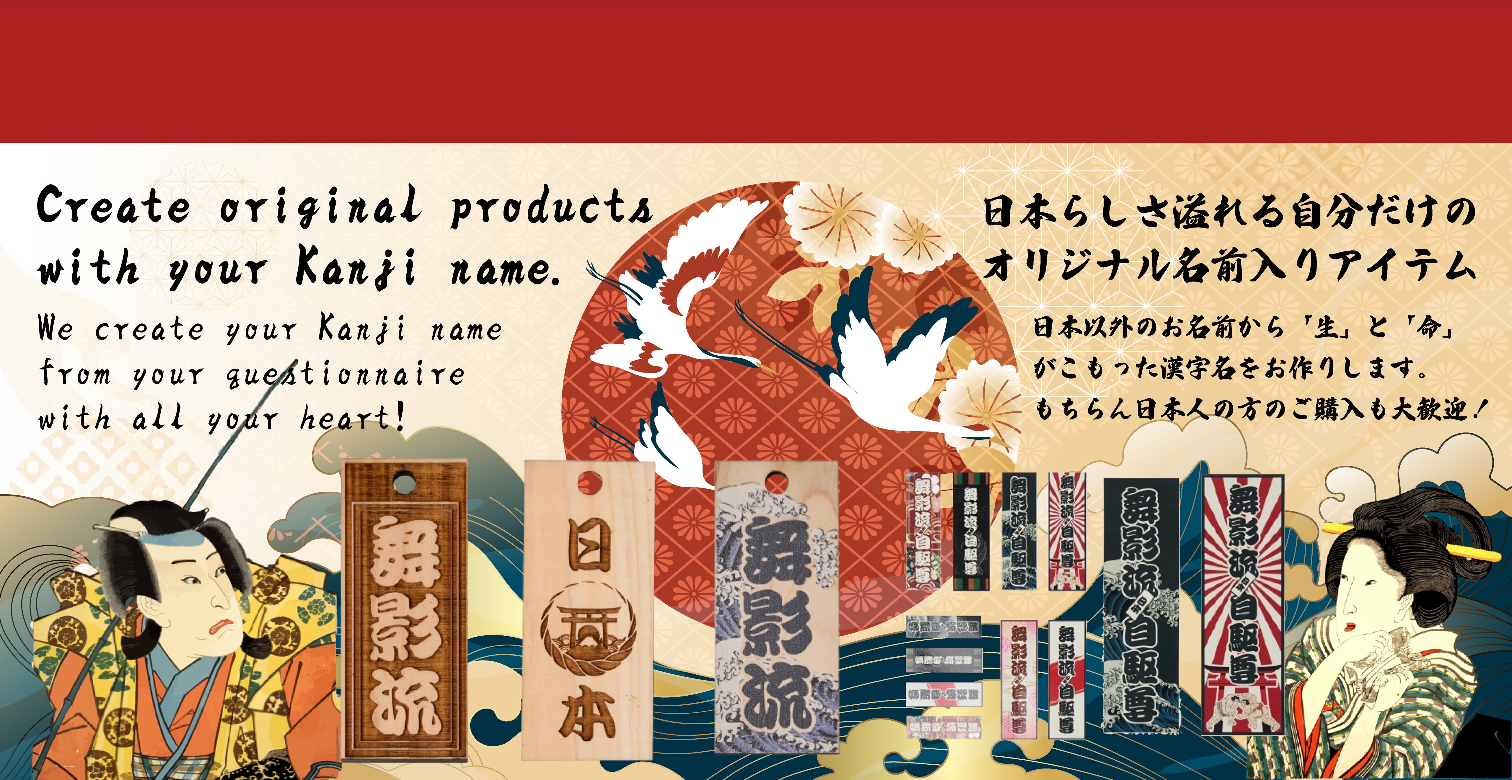 Create a Kanji name and make your own traditional Japanese original named products.